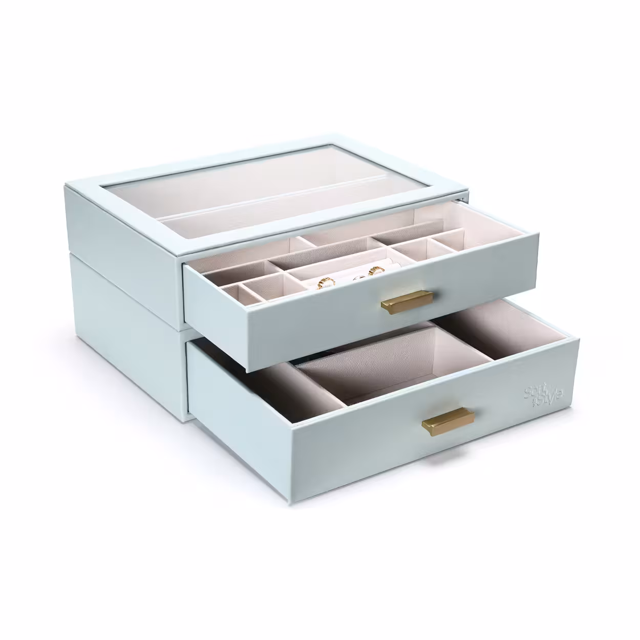 This aqua color jewelry box is designed to bring ease and clarity to the moments you get ready, keeping your pieces visible, protected, and within reach so your routine feels calm, intentional, and effortless.